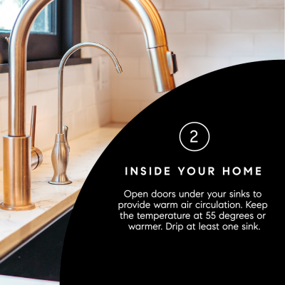 Maintaining warmth inside your home is just as important. Open cabinet doors under sinks to allow warm air to circulate, keep your thermostat set to at least 55 degrees, and let one faucet drip during extreme cold. These small steps help protect interior plumbing when temperatures drop.